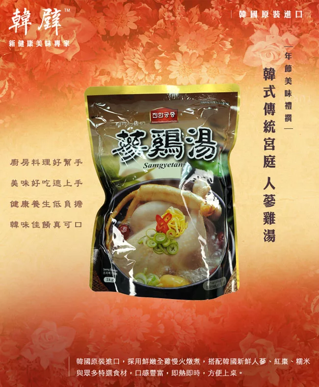 商品推薦:【韓璧食府】韓國傳統宮中蔘雞湯1kg(韓國原裝進口)